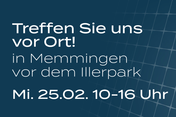 Erfahren Sie auf unserer Roadshow alles über Solarparks, Photovoltaik und nachhaltige Energielösungen für die Zukunft — wir freuen uns auf den persönlichen Austausch mit Ihnen!